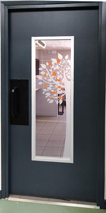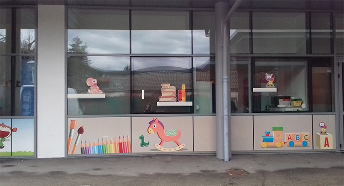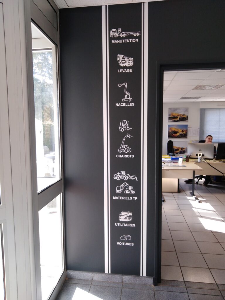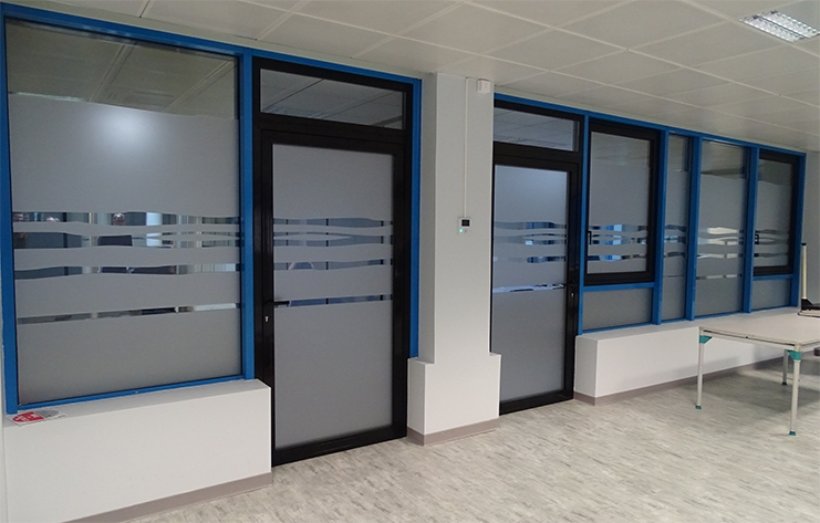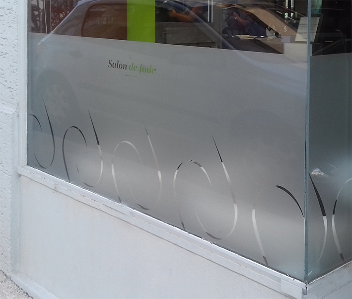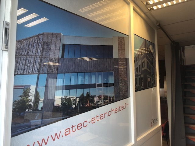 les films dépoli, les impressions numériques sur supports opaques, transparents, micro perforé... ou des adhésifs découpés (lettrages, logos, décors...)…